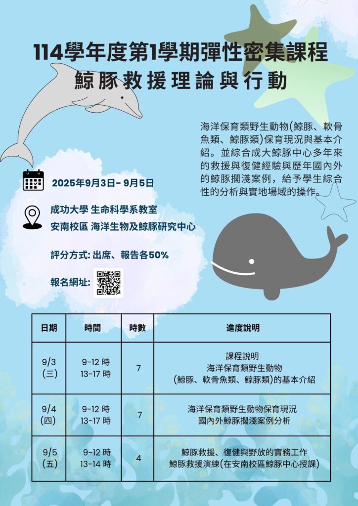 暑期彈性密集課程:鯨豚救援理論與行動,歡迎踴躍報名!