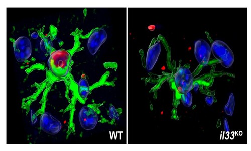 星形膠細胞之白介素-33參與膠質纖維酸性蛋白質的表達,並在參與化學誘導額葉皮質微膠細胞和神經活化