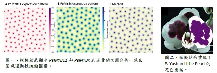 Ti-Wen Lu (盧提文), Wen-Huei Chen (陳文輝), Pao-Yang Chen (陳柏仰), Yu-Chen Shu (舒宇宸), and Hong-Hwa Chen ( 陳虹樺). (2024) Perturbation of periodic spot-generation balance leads to diversified pigmentation patterning of harlequin Phalaenopsis orchids: in silico prediction. BMC Plant Biology, 24, 681.