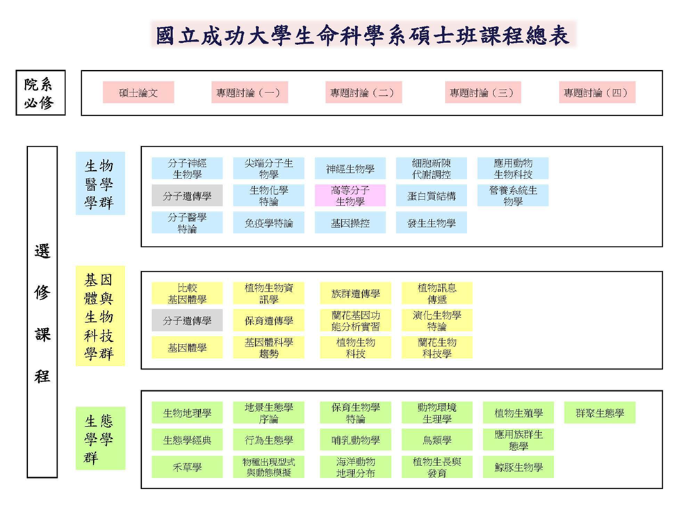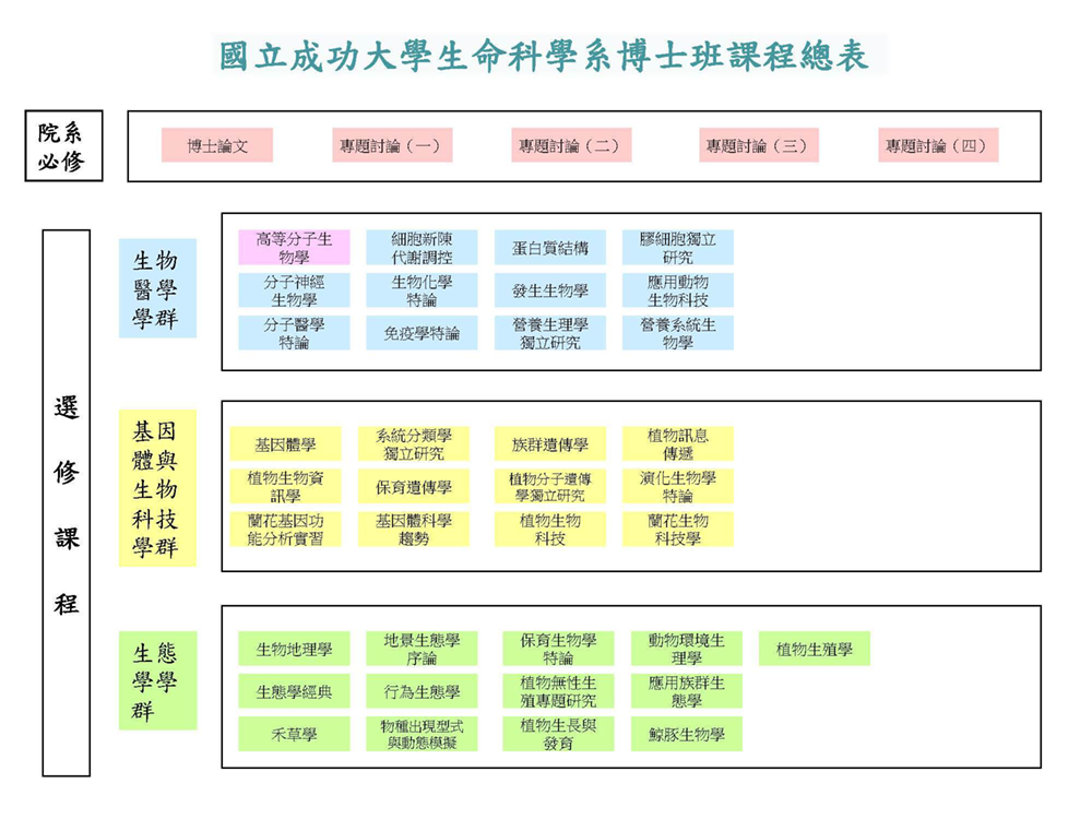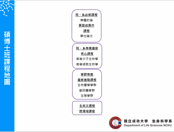 生命科學系碩、博士班有不同的修課要求: